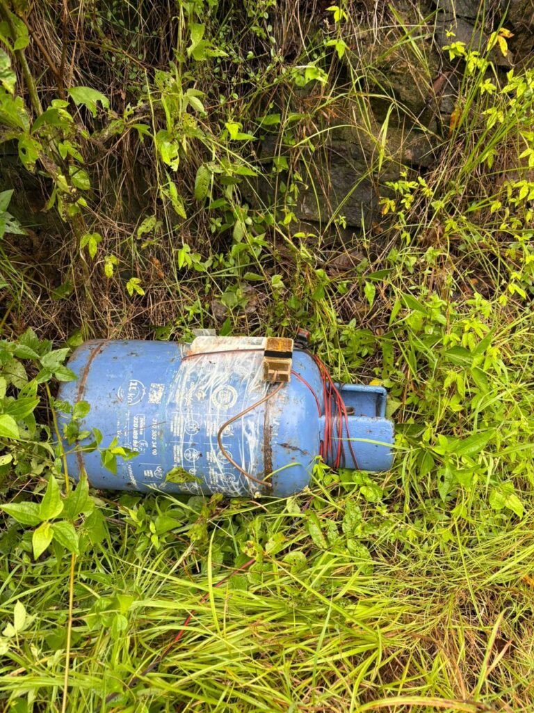 Tropas del Batallón Especial Energético y Vial N.° 3, adscritas a la Décima Brigada del Ejército Nacional, ubicaron y destruyeron de manera controlada un artefacto explosivo improvisado tipo cilindro, de 40 libras, perteneciente al Frente Camilo Torres Restrepo, del grupo armado organizado ELN, en zona rural del municipio de Pelaya, departamento del Cesar.