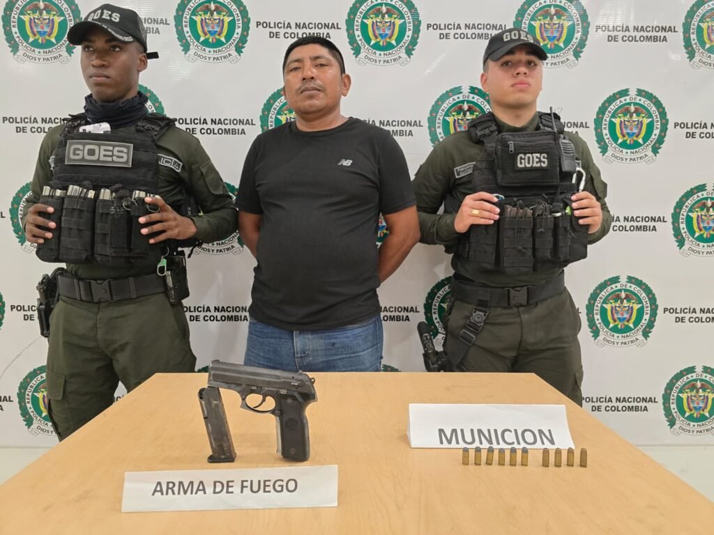 El Grupo de Operaciones Especiales GOES de la Policía Nacional incautó un arma de fuego y 10 cartuchos calibre 40 en Riohacha