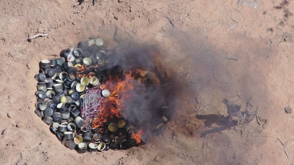 Soldados del Batallón de Caballería Mediano N.º 10, de la Décima Brigada, en un trabajo conjunto y coordinado con la Fuerza Aeroespacial Colombiana y la Policía Nacional, ubicaron 235 minas antipersona, 235 detonadores eléctricos improvisados y 60 kilogramos de sustancia explosiva a base de nitrato de amonio, que presuntamente pertenecían al grupo armado organizado (GAO) ELN, en zona rural del municipio de Uribia, La Guajira.