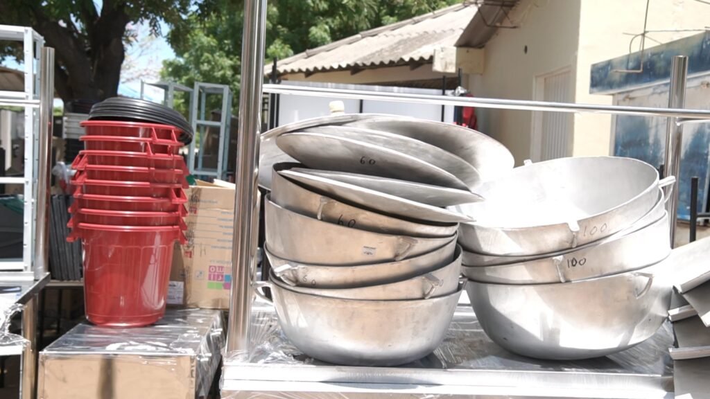 Entre los elementos entregados se encuentran neveras y ventiladores solares, mesas de comedor, sillas, estufas industriales, utensilios de cocina, vajilla plástica, tanques para almacenamiento de agua y herramientas de apoyo como básculas, licuadoras y molinos.