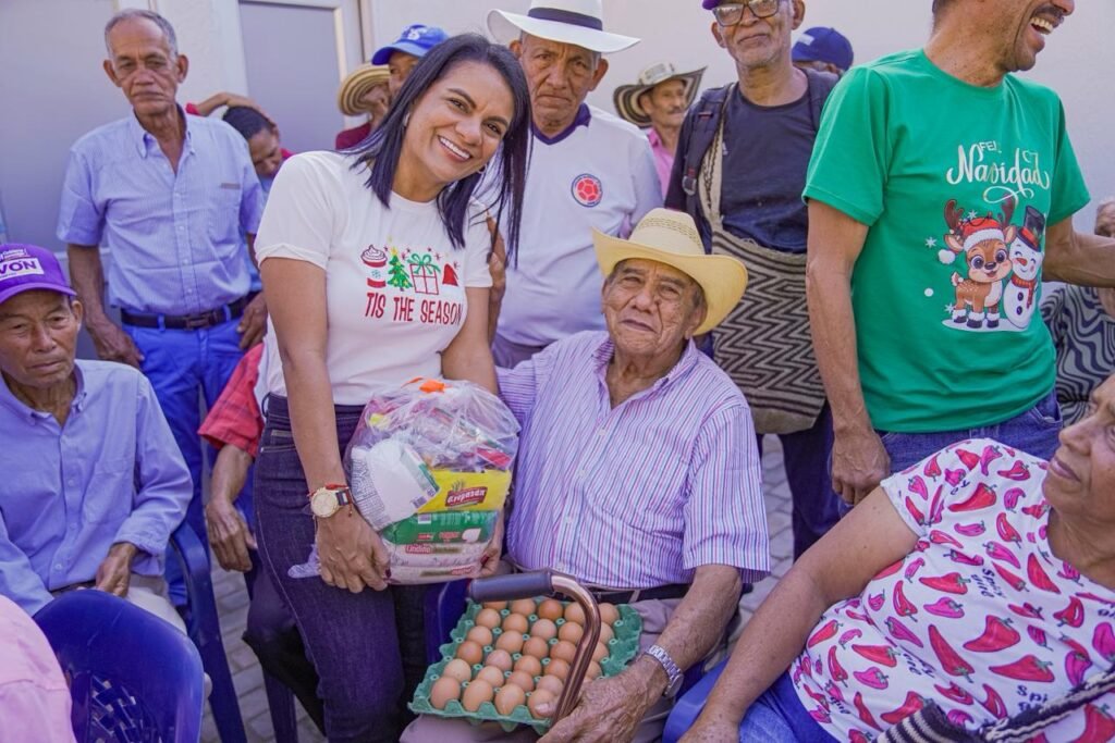 Durante la actividad, la mandataria, acompañada por la gestora social Paola Morón, la secretaria de Salud y Educación Gycielis Perea y el secretario de gobierno Lenin Sierra, hizo entrega de mercados a los adultos mayores como un gesto especial de fin de año, reafirmando el compromiso de la administración con el bienestar, el apoyo y la dignificación de esta población.