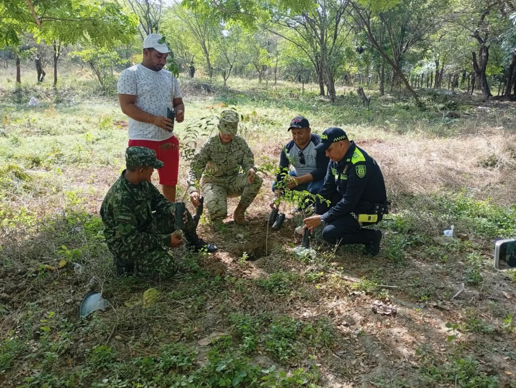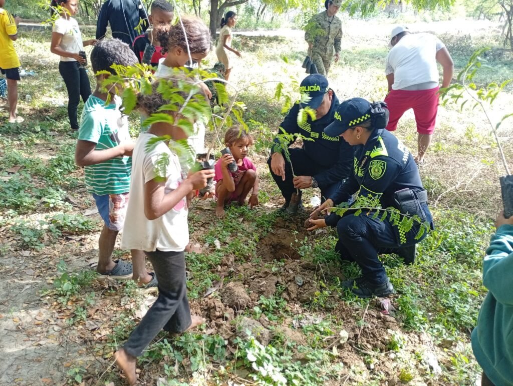 Un ejercicio que une el cuidado del medio ambiente con la seguridad ciudadana, la Policía Nacional, lideró una jornada ambiental en el municipio de Hatonuevo, donde junto a funcionarios de la Administración Municipal, el Ejército Nacional, el presidente de la Junta de Acción Comunal del barrio El Pozo y la comunidad en general, se llevó a cabo una campaña de siembra de árboles nativos en la orilla del balneario El Pozo.