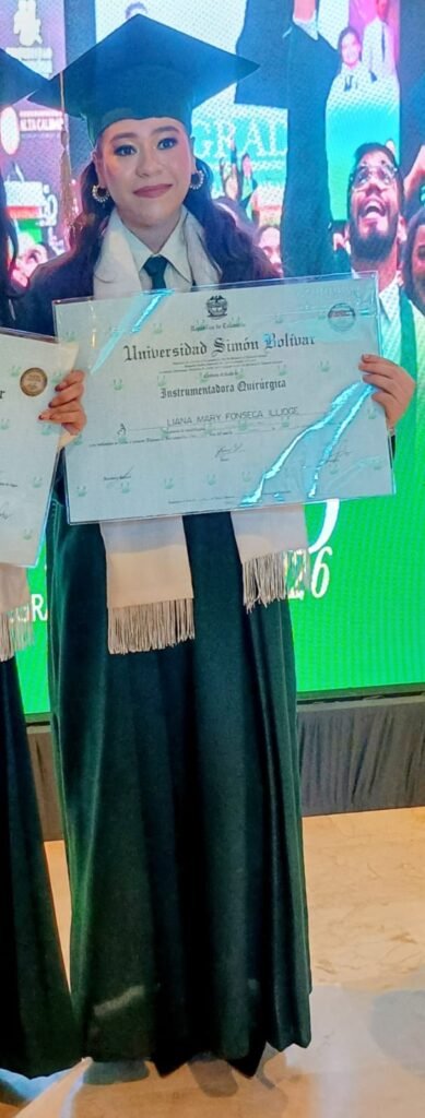 La joven riohachera Liana Mary Fonseca Illidge recibió grado como instrumentadora quirúrgica, título que le otorgó el Ministerio de Educación Nacional a través de la Universidad Simón Bolívar de Barranquilla.