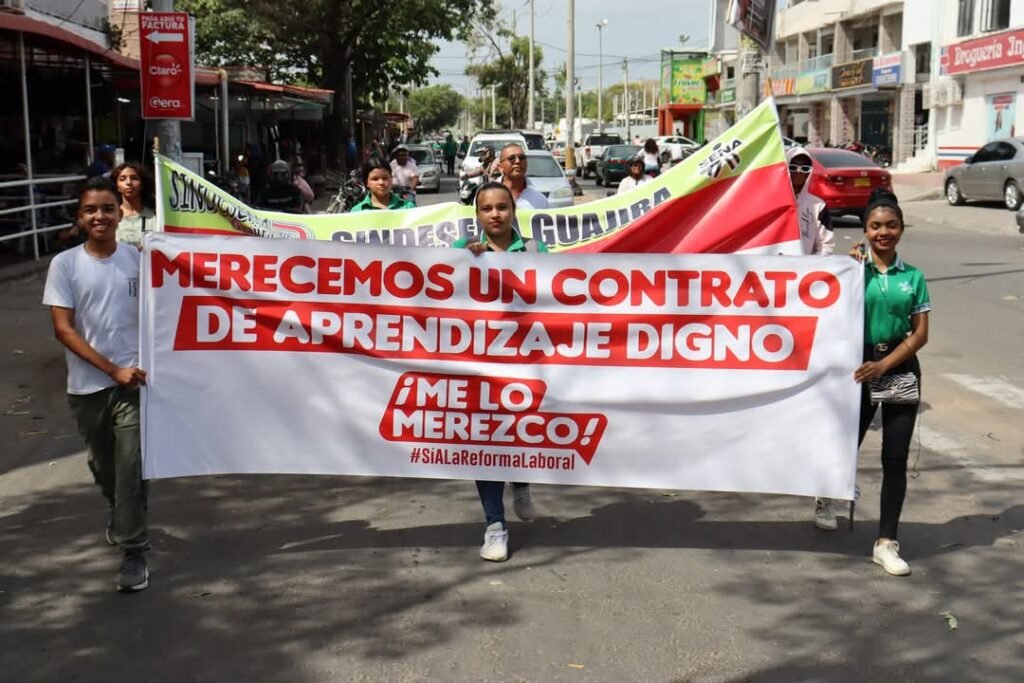 Durante la jornada pacífica, donde los maestros y demás sectores sindicales manifestaron su respaldo a las reformas sociales y la nueva consulta popular presentadas al Gobierno Nacional, además de rechazar el hundimiento de la reforma laboral,m. Los líderes de la Asociación de Educadores con micrófono en mano frente al edificio de la Gobernación de La Guajira, exigieron las condiciones mínimas para brindar una educación de calidad a los niños, niñas y jóvenes de este departamento, al tiempo que hicieron referencia al cese de actividades reciente en los cuatro entes territoriales certificados.