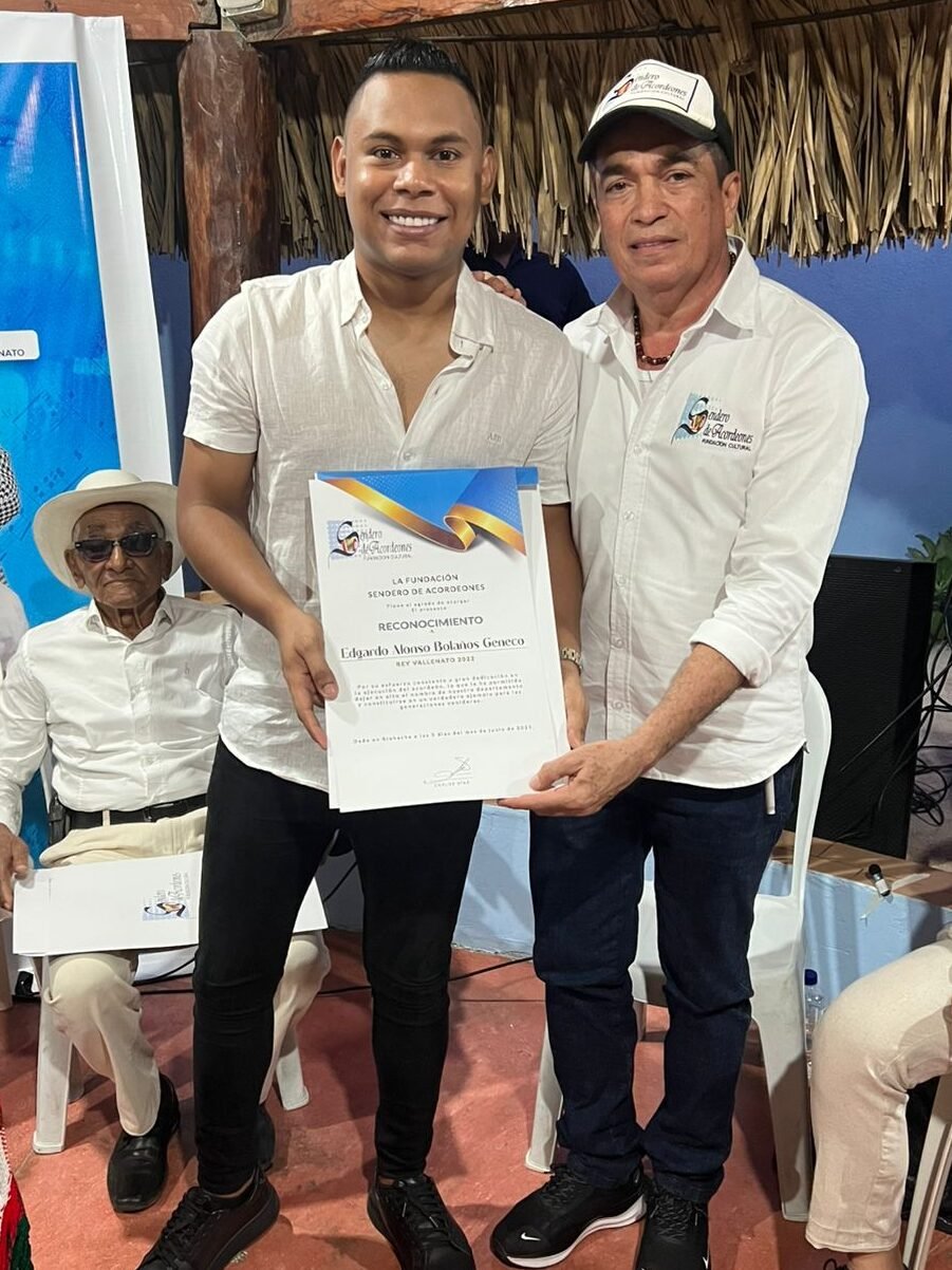 Óscar Gamarra y Hafit David, dos figuras de la canción vallenata que actualmente están en los primeros lugares tanto a nivel de presentaciones como en las emisoras y plataformas musicales, también fueron homenajeados por su ‘profe’ Carlos Díaz, un conocedor del folclor, pero que también posee el don para enseñar y motivar a sus alumnos en esta escuela que inició hace 26 años.