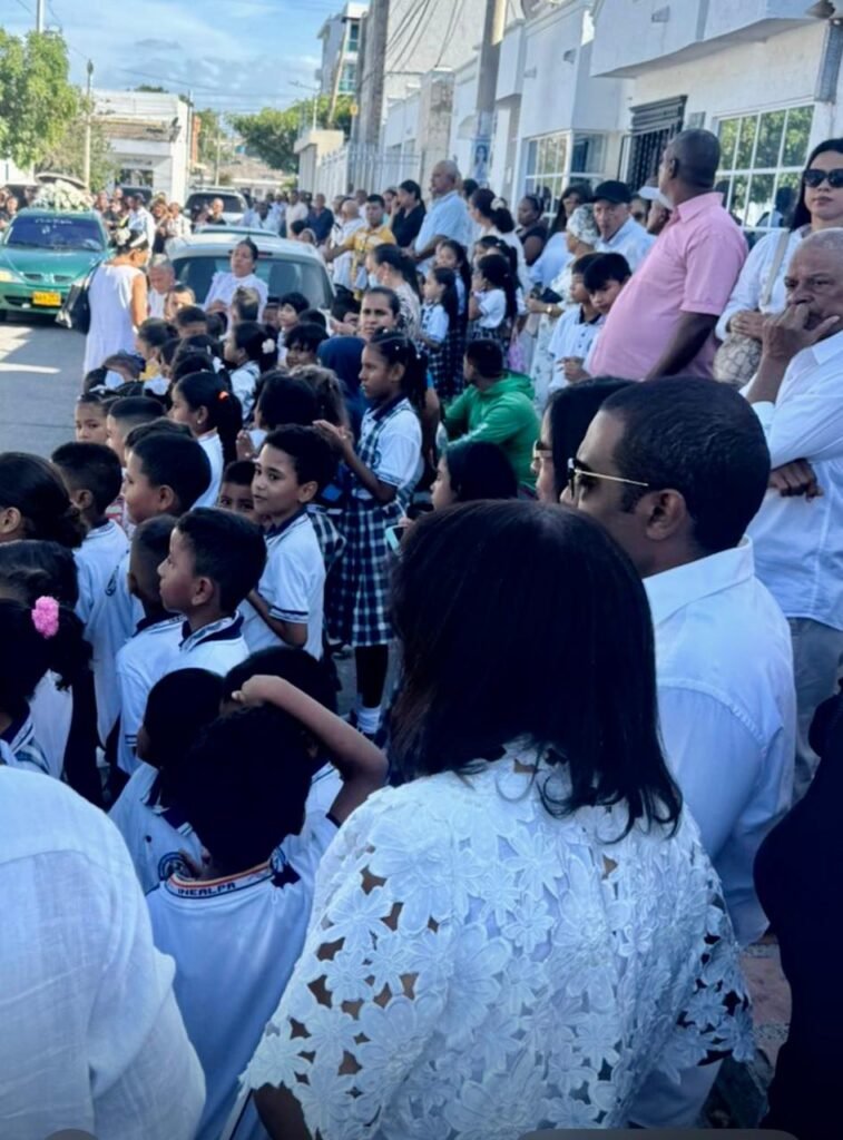 Una multitud de Riohacheros y los niños del Colegio Las Americas despidieron con afecto a la docente Rosa Ceballos Sierra.