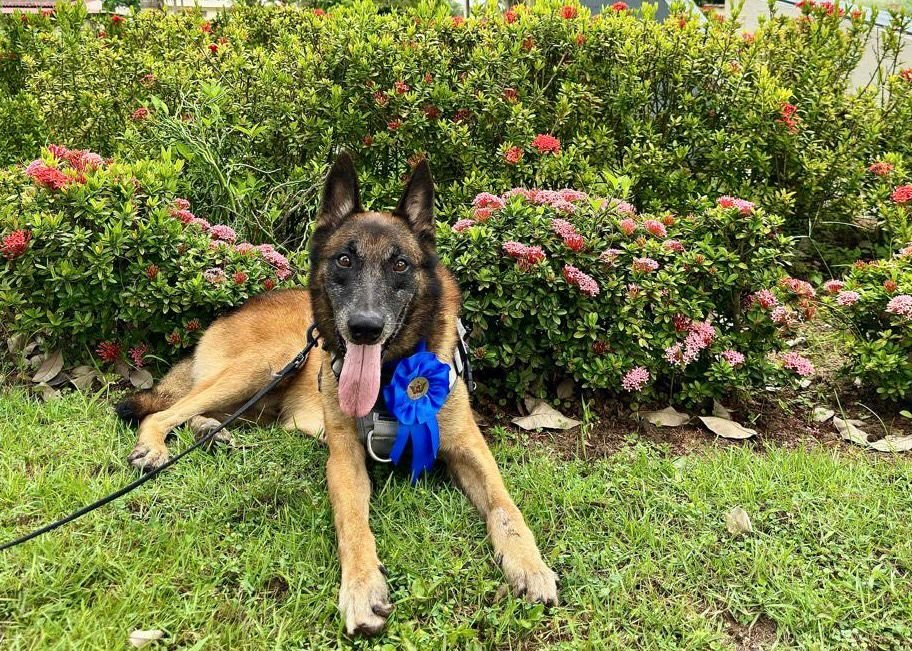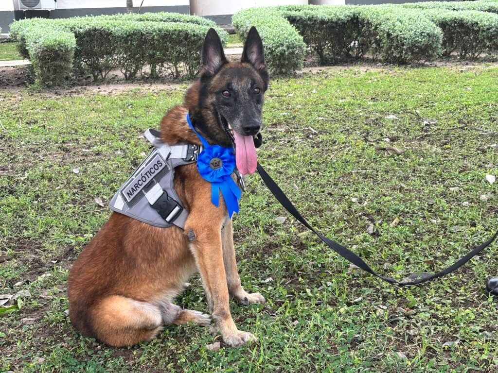 Con un ánimo inquebrantable, el canino cumplió fielmente cada misión asignada con su olfato preciso, demostrando fortaleza, disciplina y lealtad incondicional.