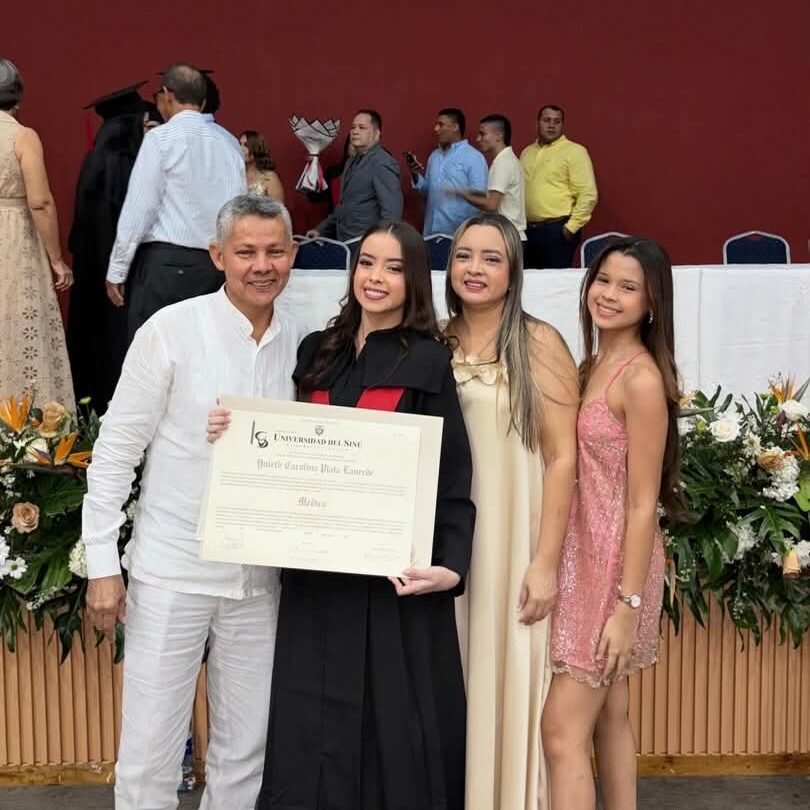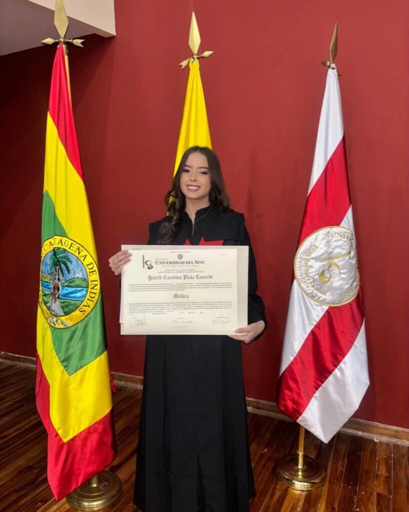 El Ministerio de Educación Nacional, a través de la Universidad del Sinú, con sede en Cartagena, otorgó el título como médica cirujana a la joven villanuevera Yaileth Carolina Plata Laverde, quién estuvo en la ceremonia de grado acompañada por sus padres Didier Plata y Mercedes Laverde, y su hermana Andrea.